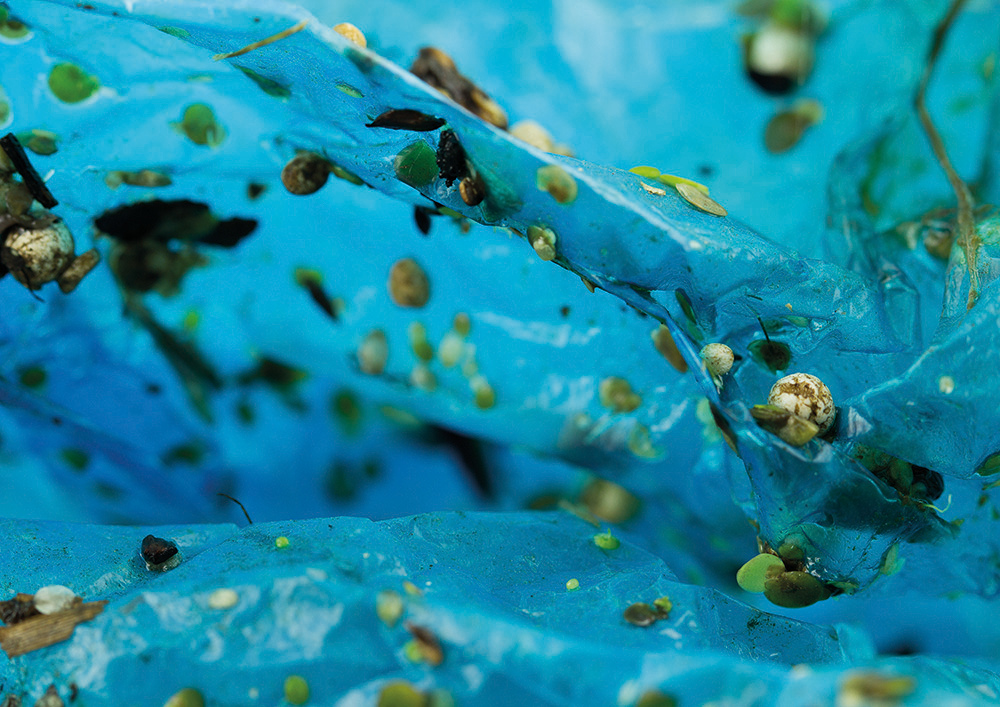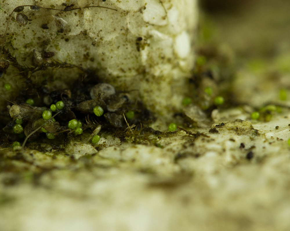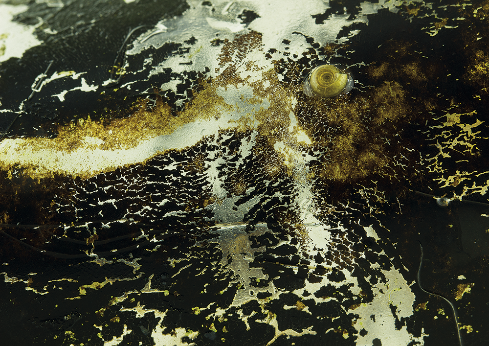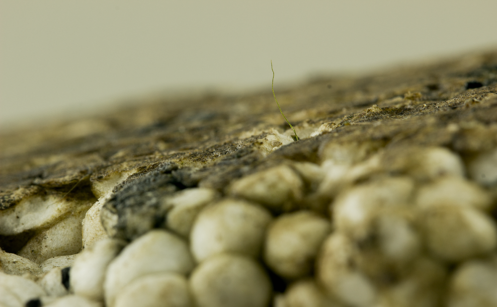 At a second stage, the artist made a selection from the 700 pieces of collected plastic to photograph them with a macro lens. In the pictures, which appear to us as alienating landscapes, it is visible that there are life forms present on the plastic. This is to emphasize the core idea of the project: nature can adapt and the planet will survive, as it always does, but we won’t. This is a premonition of what is to come if we don’t change our attitude towards climate change and waste.