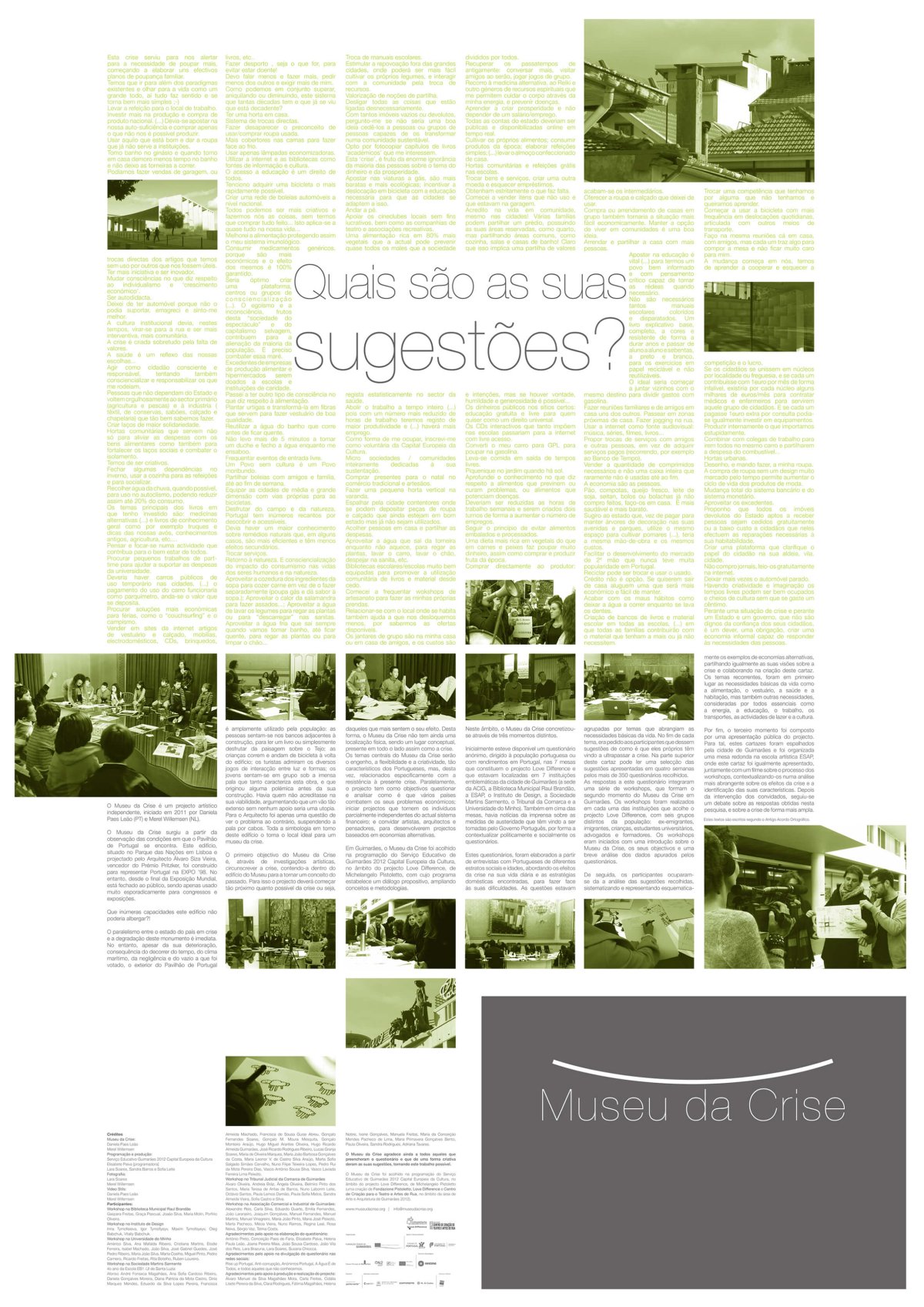In Guimarães, Museu da Crise became part of the Educational Programme of Guimarães European Capital of Culture 2012, within the framework of Love Difference, a project initiated by Michelangelo Pistoletto aimed at fostering dialogue and expanding social and artistic methodologies. Within this institutional context, Museu da Crise positioned itself not as a celebratory contribution, but as a critical intervention into the realities of economic austerity shaping Portugal at the time.